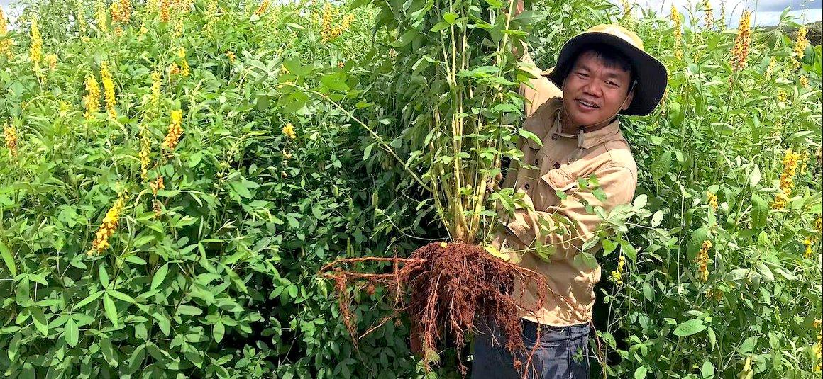 Au Cambodge, le Cirad et le ministère de l’agriculture du Cambodge ont démarré des expérimentations il y a quatorze ans, sur des systèmes à base de manioc, une culture couvrant près de 700 000 hectares dans le pays et principalement destinée à l’exportation pour produire de la farine pour l’alimentation animale.
